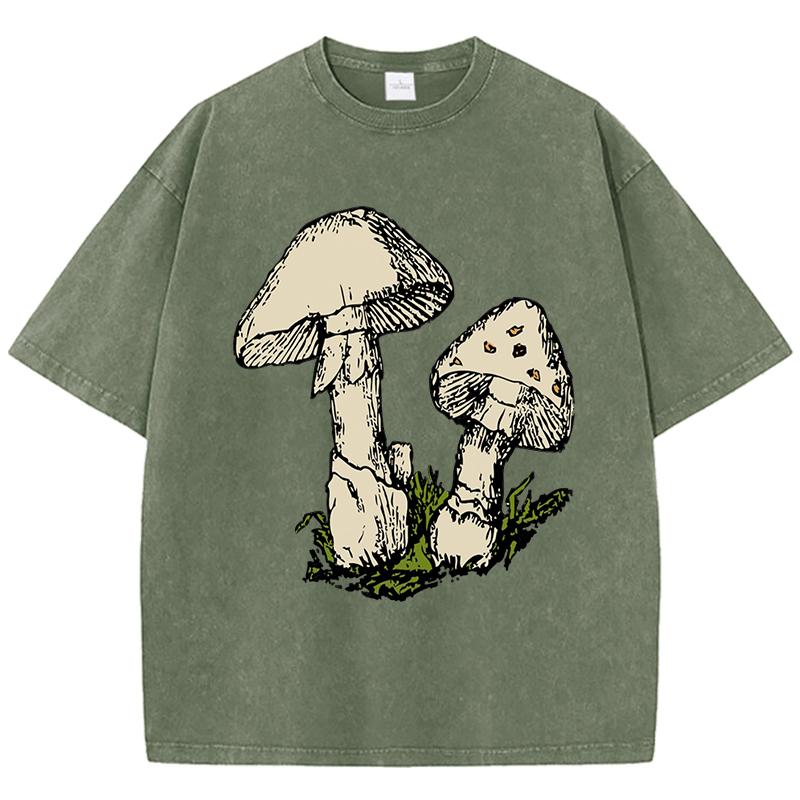 Cartoon Mushrooms Print Womens Washed T Shirt Cotton Y2K T-Shirt Oversized Casual Short Sleeves Summer Streetwear