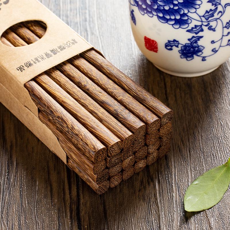 Non-Slip Solid Red Sandalwood Chopsticks - Unpainted & Unwaxed, 10 Pairs, Laser Engraved