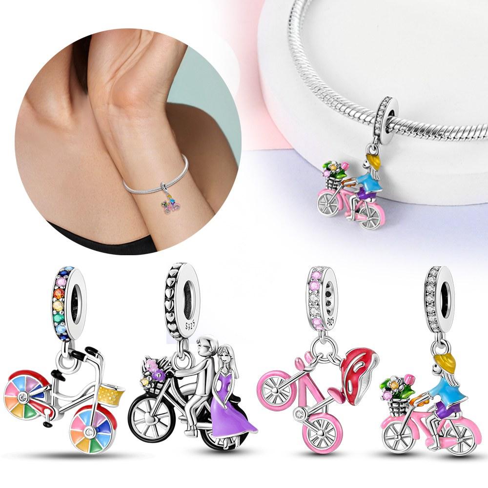 New copper Colors Bicycle Girl Pendant Compatible With copper Colors Authentic Bracelets Do It Yourself Birthday Jewellery Gift