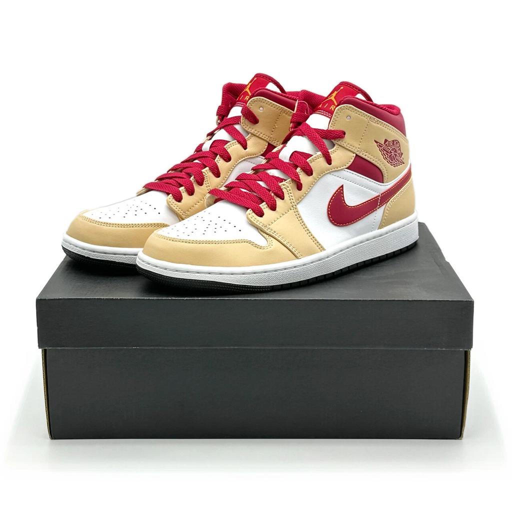 554724-201 Nike Air Jordan 1 Mid Onyx Beige Light Curry Cardinal Red