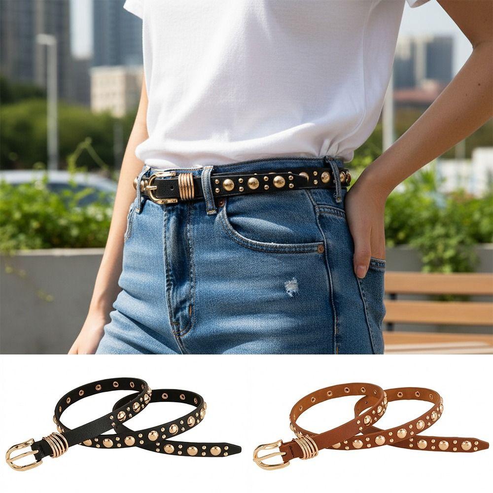 Metal Buckle Rivet Heavy Metal Belt Pu Leather Dress Waistband Women's