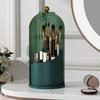 Birdcage Rotating Makeup Brush Holder with Dustproof Compartments for Desktop Cosmetics and Pen Storage