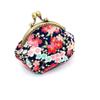 Uni Made in Futago Japanese Puffy Clasp Pouch Blossom Navy (0217-3) Seni, Japan, Chirimen, Pattern, 3.6-inch [Cherry Design, Blue]