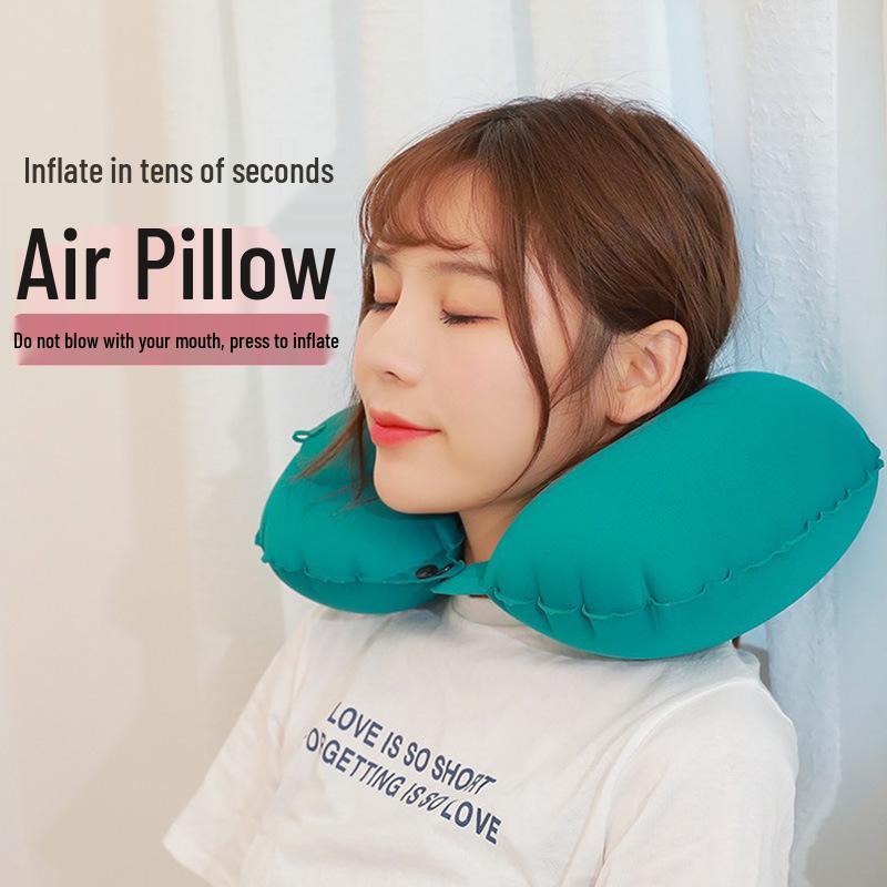 Available: Press-Type Inflatable U-Shaped Travel Neck Pillow for Airplanes and Lunch Breaks.
