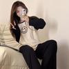 Women's Smile Face Cartoon Pajama Set - Long Sleeve Spring/Autumn Sleepwear