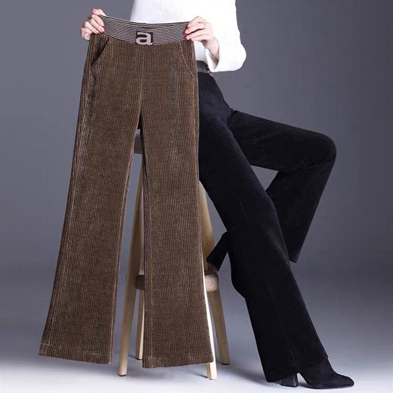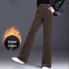 Dámské manšestrové kalhoty s vysokým pasem a širokými nohavicemi s fleecem - Pohodlné, volný střih pro podzim a zimu.