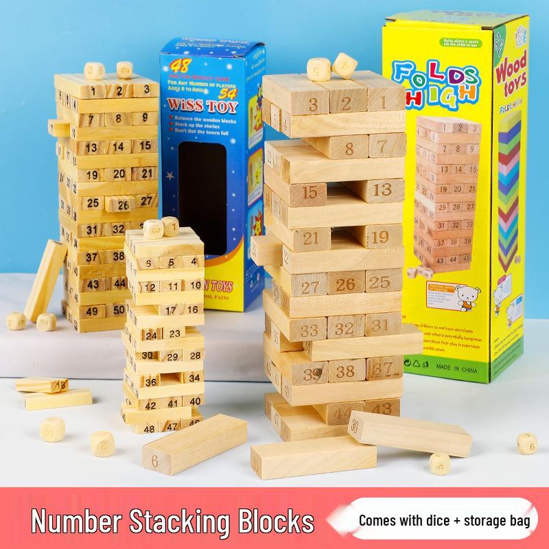 54-Piece Colorful Wooden Stacking Blocks Domino Set for Children's Early Education
