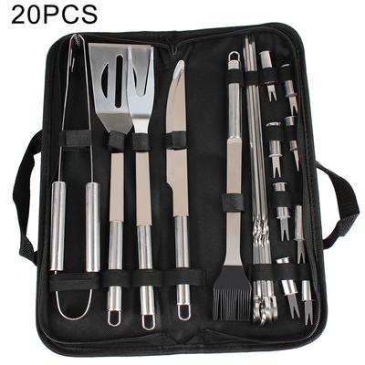 20ks Nerezová sada grilovacího nářadí Venkovní přenosná sada grilovacího nářadí pro rodinné venkovní aktivity