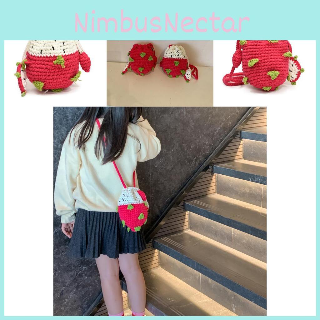 Charming Knitted Children's Bag With Adorable Dragon Fruit Design For Boys And Girls
