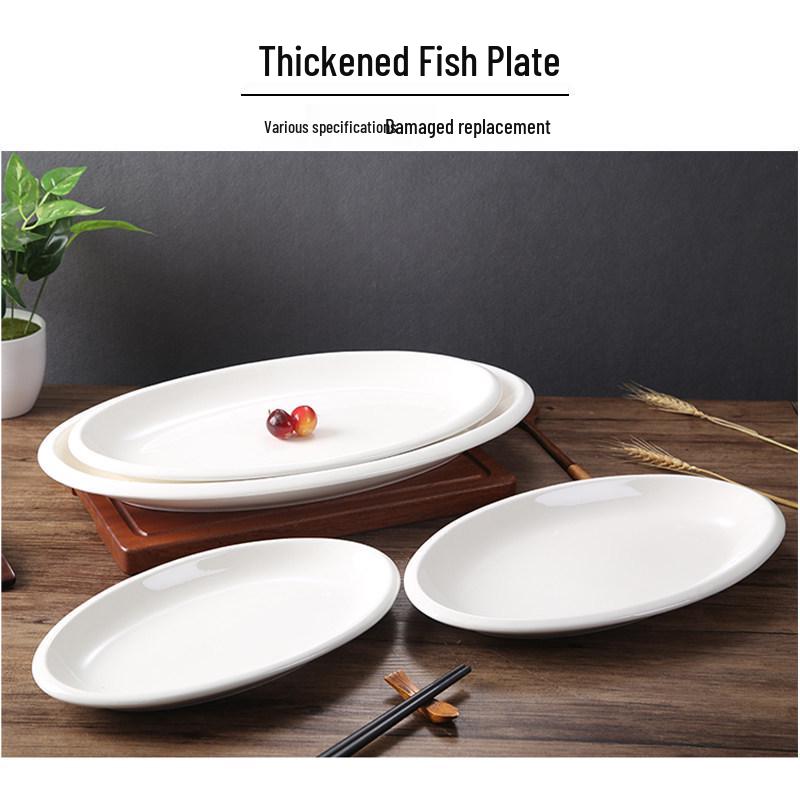 Extra Large Oval Thickened White Ceramic Fish Plate for Commercial Restaurant or Hotel Use