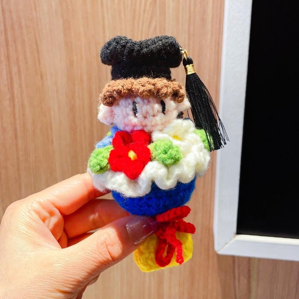 13cm Crochet Bouquet Funny Doctor Hat Bouquet Doll Handmade Knitted Figures Students Gift