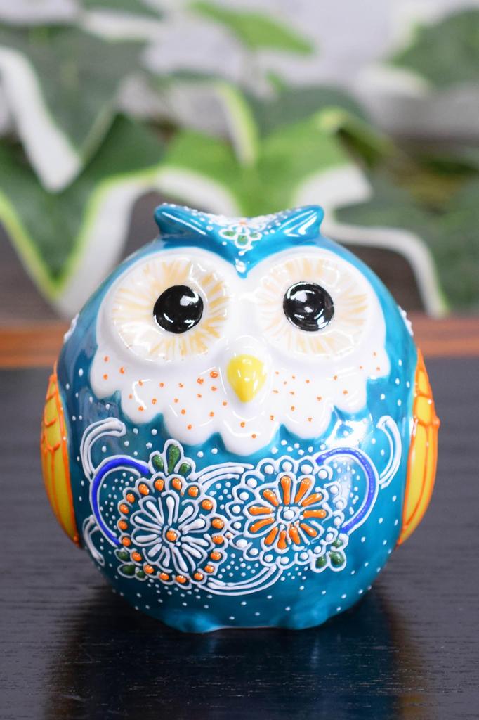 Waza no Kura Stylish Owl Figurine, Kutani Ware, Verdigris Glaze, Ceramic, Lucky Charm, High-End Brand Interior Decor Object, Perfect for 60th, 70th, 7