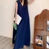 Original Cotton Linen Women Dress With Pocket Solid Loose V-Neck Sleeveless Summer Korean Long Robe Dress For Women