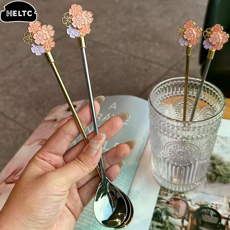 Stainless Steel Japanese Cherry Blossom Spoon Exquisite Dessert Long Handled Ice Spoon Household Bird's Nest Mixing Spoon
