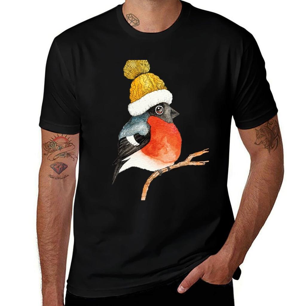 Christmas bird Bullfinch TShirt Basic Daily Outfit Short Sleeve Tee