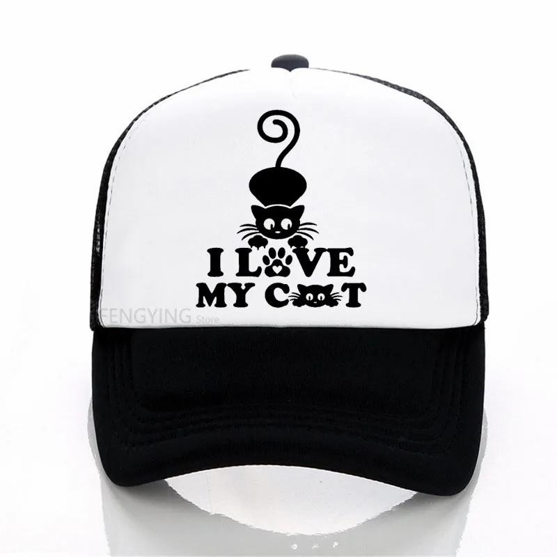 I Love My Cat print baseball cap summer Casual mesh trucker hat fashion sun snapback hats