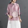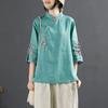 Vintage Cotton Linen Shirt Women's Spring Summer Stand Collar Button Embroidered Tea Dress