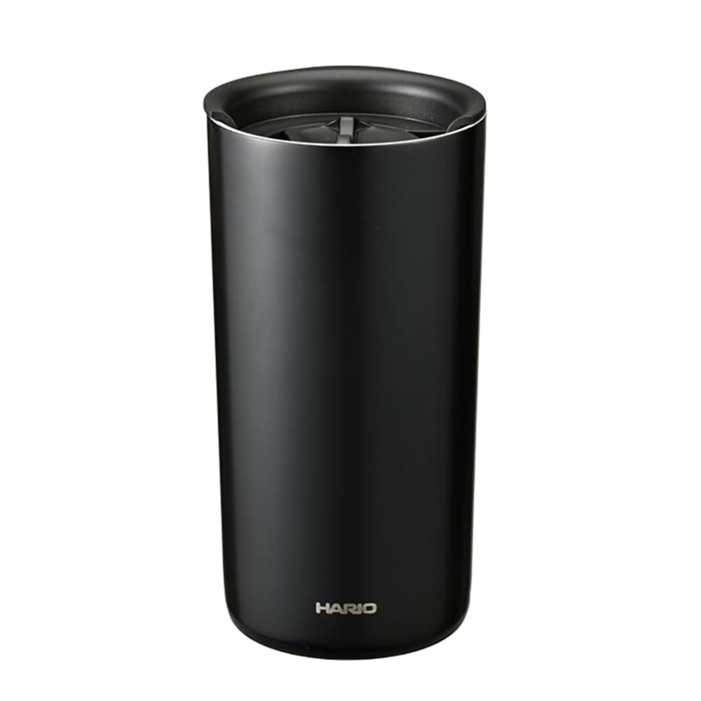 HARIO Ceramic Coated Vacuum Insulated 350mL Keeps Drinks Hot or Swivel Black Double-Walled Tumbler, Capacity, Cold, Lid, CTF-350-B
