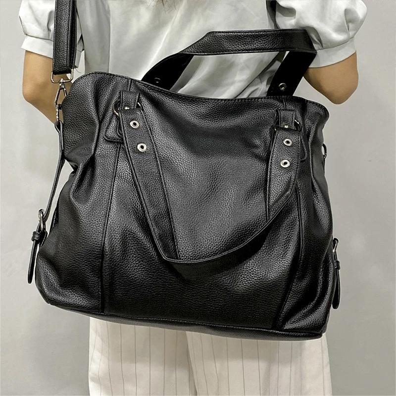 Retro Large Capacity Shoulder Bag Luxury Black Classic Messenger Bag High-quality Leather Commuting Tote Bag Niche Shoulder Bag