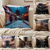 Historic Korean Landmark FFoguo Temple Cushion Cover Pillowcase Antidustmite Invisible Zipper Short Plush Sofa Cushion