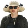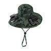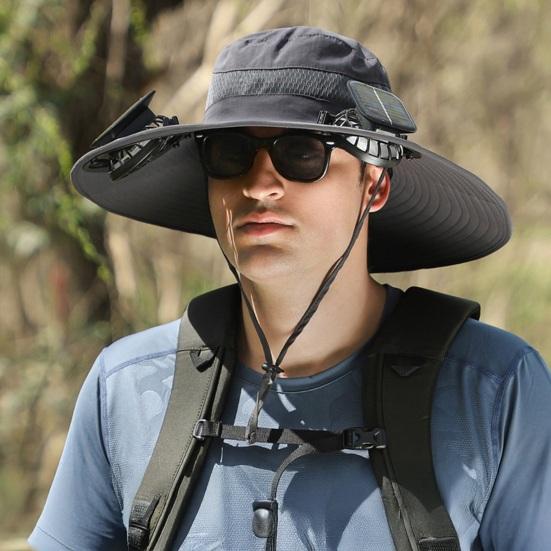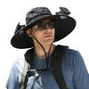 Fisherman Hat with Dual Brushless Cooling Forehead Neck Solar Fans UPF50 Anti-UV Fabric Wide Brim Adjustable
