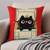 Cute Art Cartoon Handdrawn Cat Cushion Cover Pillowcase Antidustmite Invisible Zipper Short Plush Sofa Cushion