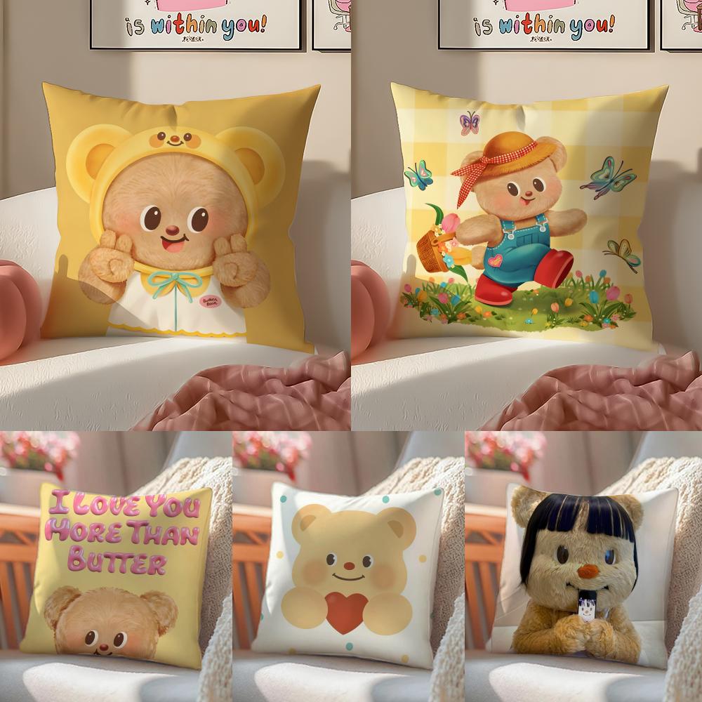 Chubby Cute Thai Character BButterbear Cushion Cover Pillowcase Short Plush Invisible zipper Room Sofa Cushion Cover