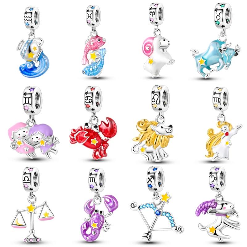 copper Cartoon Zodiac Bead Charms Fluorescent Pendant Suitable Ideal For Bracelets Do It Yourself Womens Jewellery Accessories