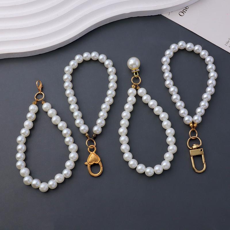 Anti-Drop Mobile Phone Chain Hanging Cord Keychains Beaded Pearl Lanyard Anti-Lost Keyrings Phone Case Chain Jewelry Gifts