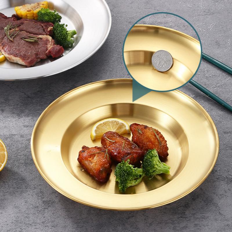 Round Kitchen Bar Tableware Cake And Fruit Snack Salad Plate Kitchen Accessories Stainless Steel Plate Camping Picnic Plate