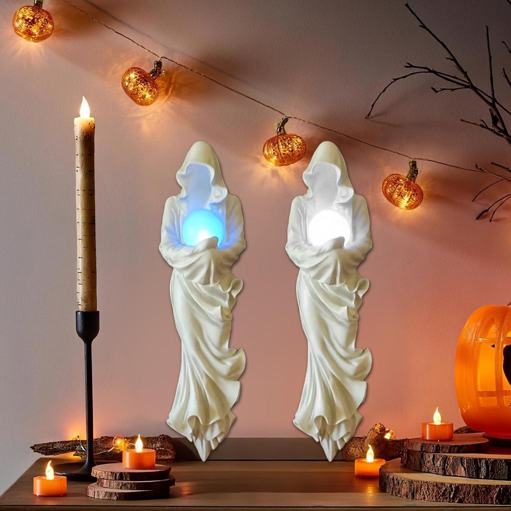 2.Ghostly Lighting Accent: Crafted to emit a soft ambient glow, this figurine delivers a haunting illuminated effect that improves spooky spaces with striking dramatic lighting