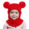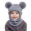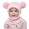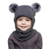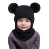 1 ks dětská integrovaná čepice a šála se dvěma pompony Roztomilá kukla Čepice pro chlapce a dívky Podzim Zima Vlněná čepice s pomponem