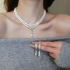 This elegant jewelry set features a necklace and matching earrings designed with unique white imitation pearls, offering a clean and sophisticated look that enhances any outfit. Crafted from high-quality artificial pearls, the set boasts a smooth surface, comfortable fit, and durable construction that resists breaking and fading, ensuring long-lasting wear. Perfect for weddings, parties, anniversaries, or daily use, this versatile imitation pearl jewelry set adds a touch of sparkling and refinement to your style.