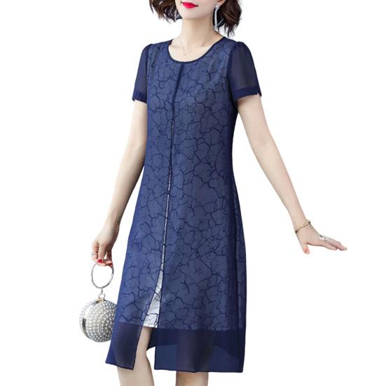 Stylish Fake Two-Piece Design: Featuring a unique fake two-piece look, this dress adds depth and dimension to your outfit. The layered design creates a visually interesting silhouette that enhances your figure without compromising comfort or simplicity.