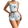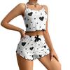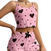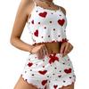 Stylish Suspender Top with Lace Hem: Featuring a chic suspender-style top adorned with delicate lace trim at the hem, this set combines elegance with a playful touch. The printed “love” design adds a fashionable and sweet aesthetic, making it perfect for those who appreciate trendy yet cozy loungewear.