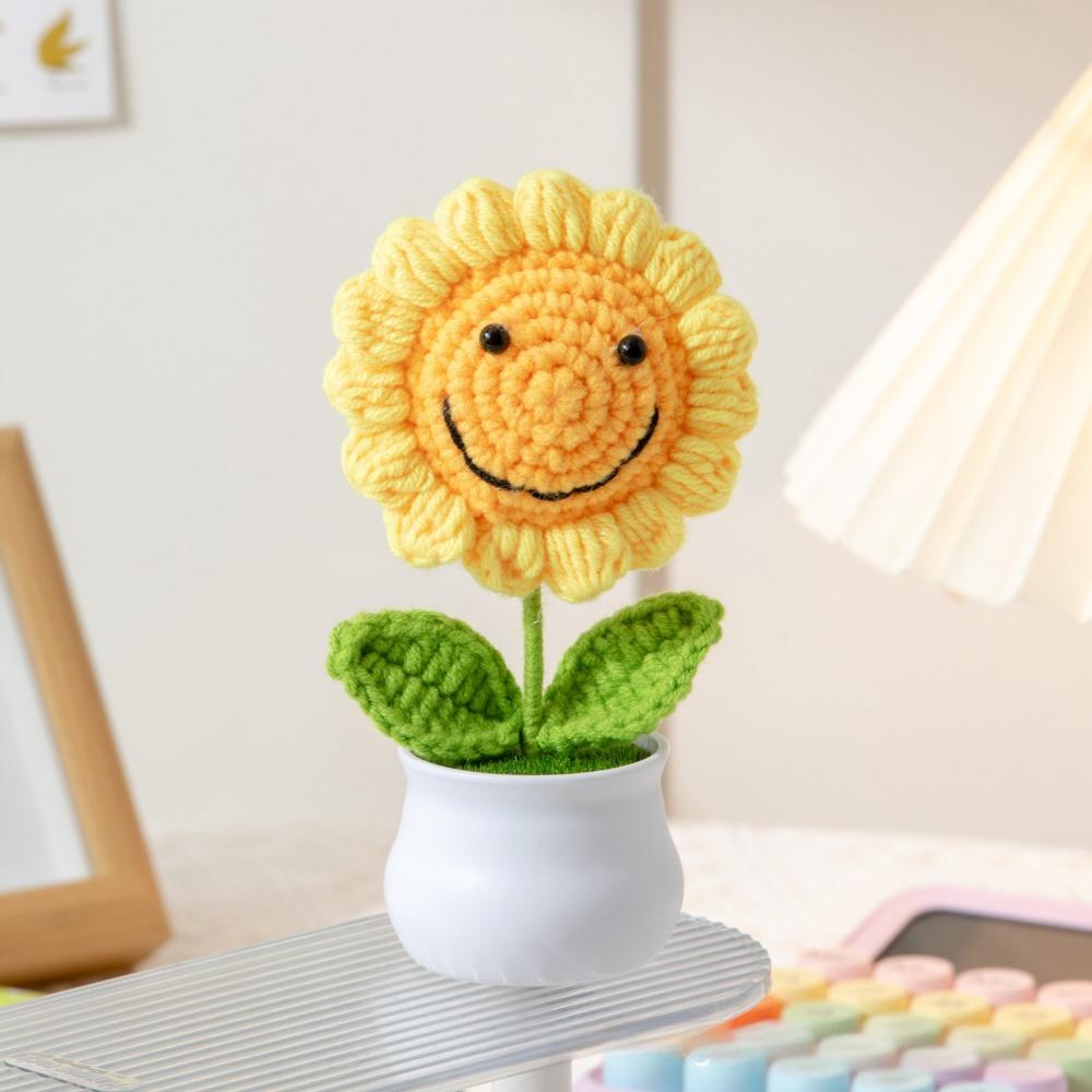 Knitted Wool Sunflower Potted Plants Simulation Flowers Study Desktop Ornaments Graduation Season Gift Artificial Flowers