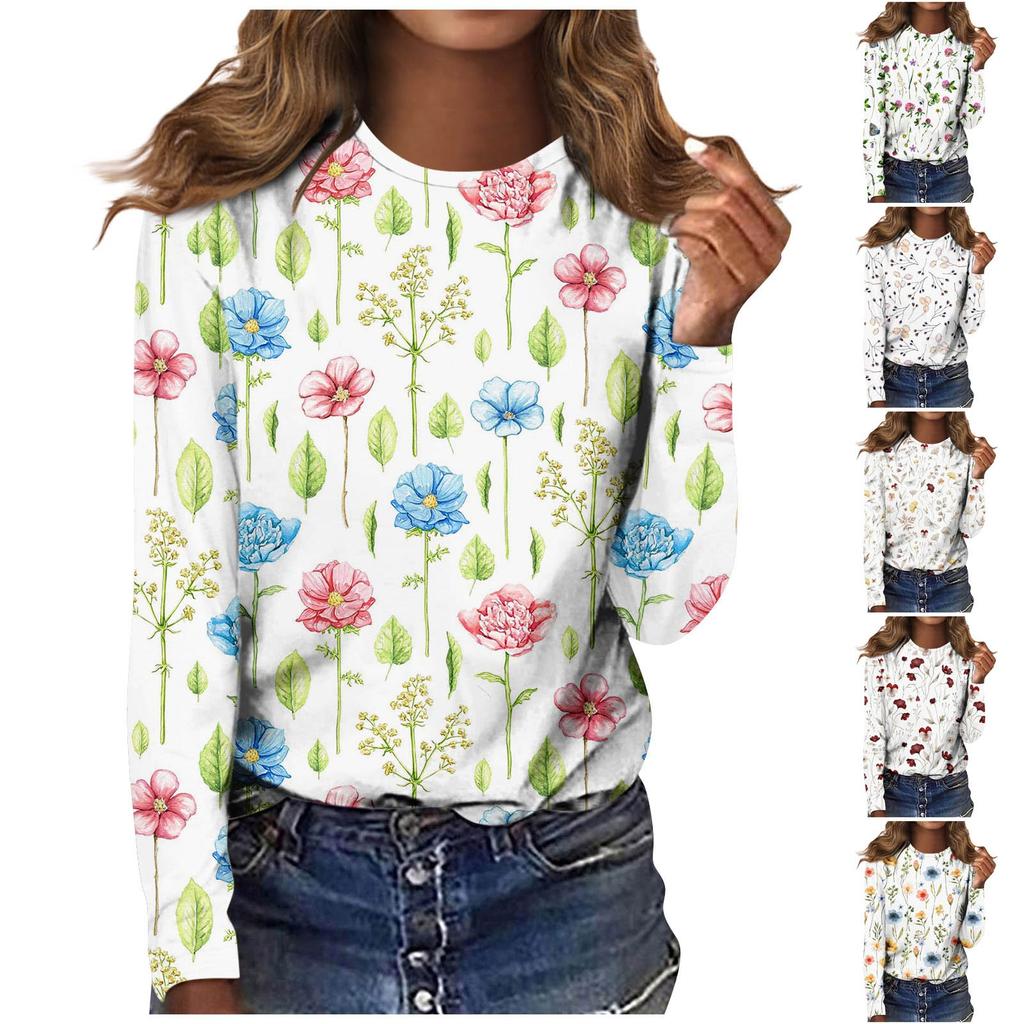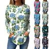 Women's Fashion Casual Long Sleeve Print Round Neck Pullover Top Blouse