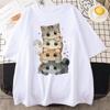 Cute Cartoon Cat Print Womens Unisexs Round Neck Short Sleeved Tshirt Casual Loose Versatile Summer T Shirt