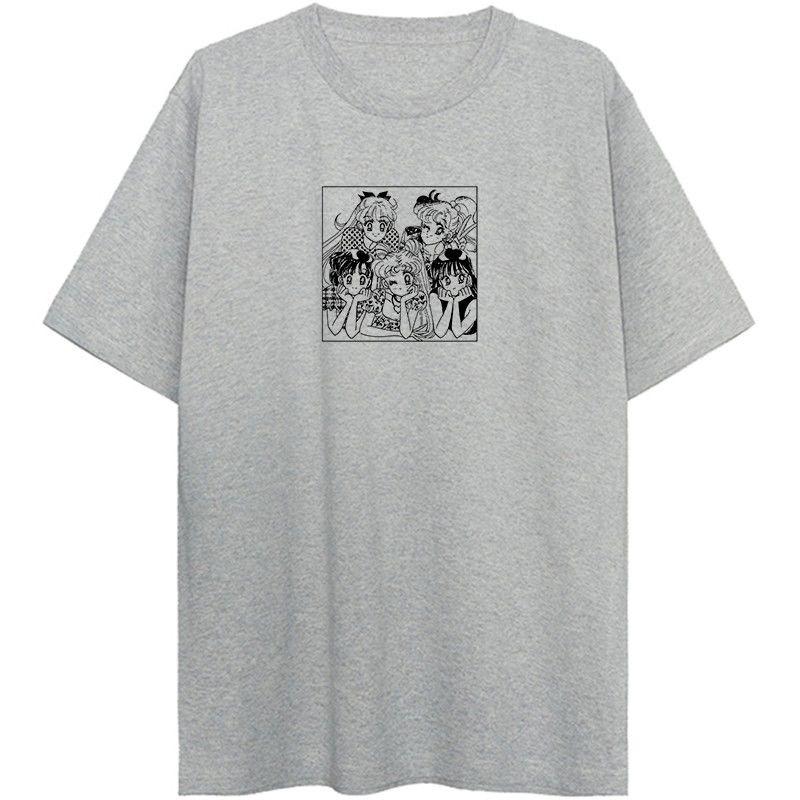 Japanesestyle Sailor Moon Retro Simple Printed Loose Soft and Cotton Summer Womens Roundneck Shortsleeved Tshirt Top
