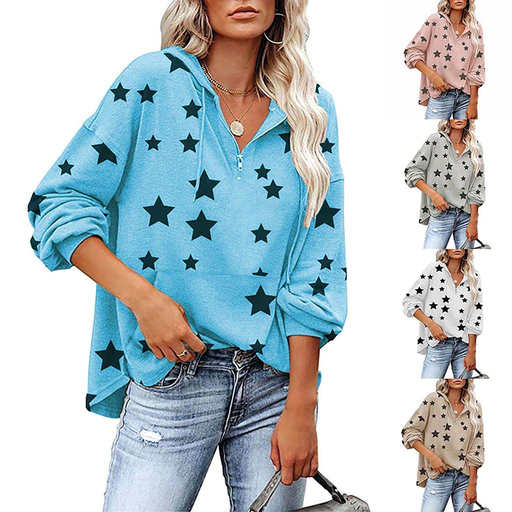 Women's Fashion Casual Long Sleeve Pentagram Print Hooded Women's Sweater T-Shirt