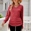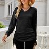 Ladies Casual Color Long Sleeve V-neck Side Drawcord Pleats T-Shirt Top description 1.Material: Made of high quality material, and suitable for everyday wear, made of soft fabric, polyester, light and comfortable, easy to dress up or take off, comfortable to wear all day long. 2. Occasion: This product is perfect for everyday, beach, outing, party, work, casual wear. Here's a to the typical "what should I wear today" dilemma. It's so random you might takesome extra covers! This one is available in a variety of colors to suit your personal . 3. It can be given to friends, family, yourself, etc., it is the best choice for gifts 4. Wash with cold water, the size will not change much, if you have any questions when choosing, welcome to consult 5. Different monitors will have a little color difference, please don't mind product information: Seasons: Four Seasons Material:95% Polyester,5% Spandex Gender: Female Occasion: Everyday, Casual : leisure Sleeve Length: Long Sleeve fit: fit Thickness: Standard Washing method: Hand wash in cold water, hang or dry Package Contents: 1 long sleeve