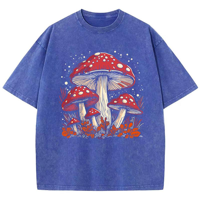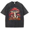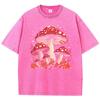 Red Mushroom Personality Graphic Print Women Washed T-Shirts Summer Cotton T Shirt Y2K Loose Short Sleeves Clothes