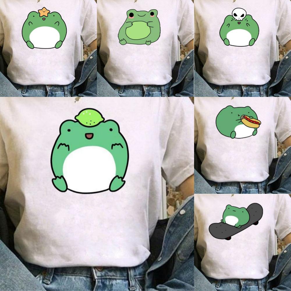 1pcs Skateboard Green Frog Tshirt Cute Green Frog Graphic Tee Women Tshirt Durable Plussize Tshirt Daily Streetwear