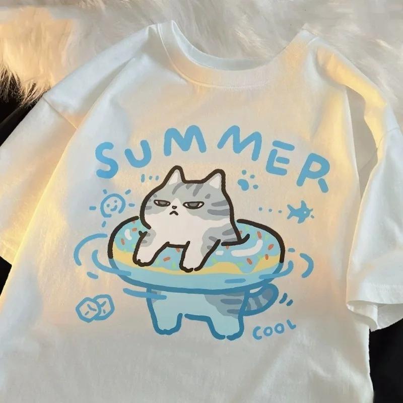 Fabric Casual Fit Urban Aesthetic Style Casual Tees Japanese Art Tee Women Short Sleeve Round Neck Breathable