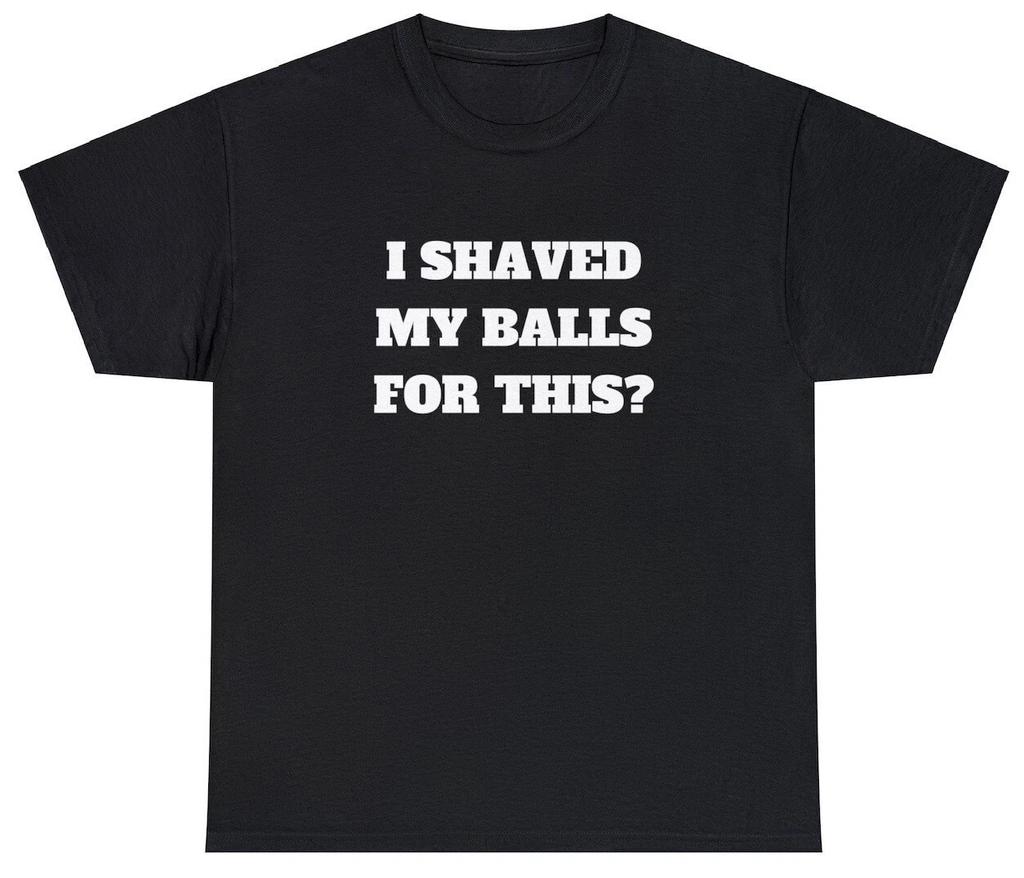 I Shaved My Balls For This TShirt Funny Gag Gift Meme Parody Ironic Sex Joke Tee