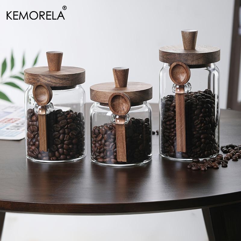 KEMORELA Set of 1/3 Airtight Glass Jars with Lids And Spoons Clear Small Food Storage Containers for Candy Spice Kitchen Storage