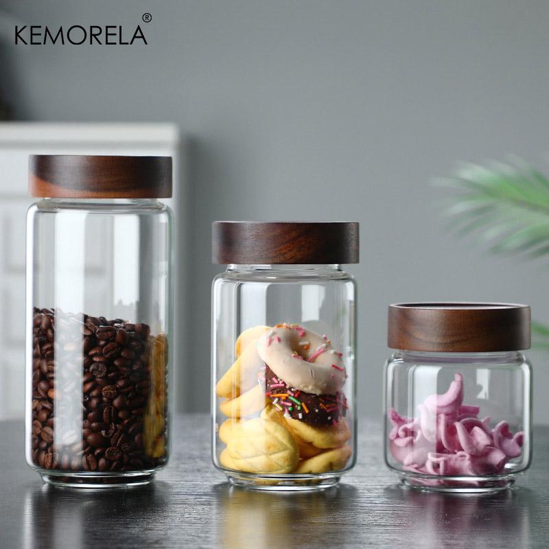 Domácí skleněné uzavíratelné dózy Dřevěné víčko Láhev Nádoby na potraviny Kávová zrna Čajová nádoba Kuchyňský organizér Dávkovač obilí