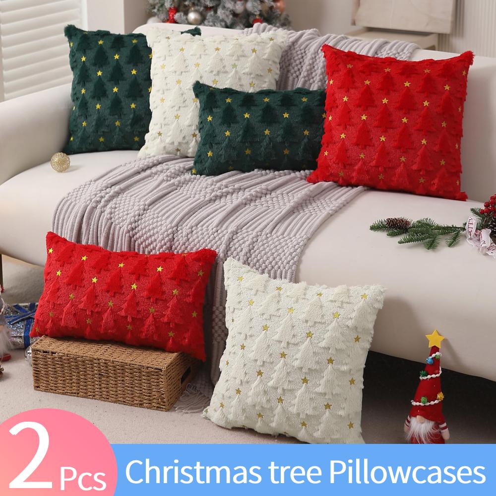 2PCS Christmas Tree Pillow Covers Soft 18 X 18 Inch Throw Pillow Covers Square Cushion Cases for Winter Home Decor