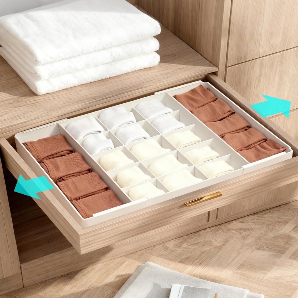 [Easy to Clean] The expandable storage box is removable and easy to wash. Made of durable plastic, it can be washed with water and is more waterproof and hygienic than fabric storage cases. Ideal for storing underwear in closets where dirt is a concern.