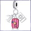 Girl Fit Original Metal Charms Beads Pink Suitcase Passport Travel Ideal for Fine Make your own Birthday Accessory Gifts Elegant Fashion Beautiful